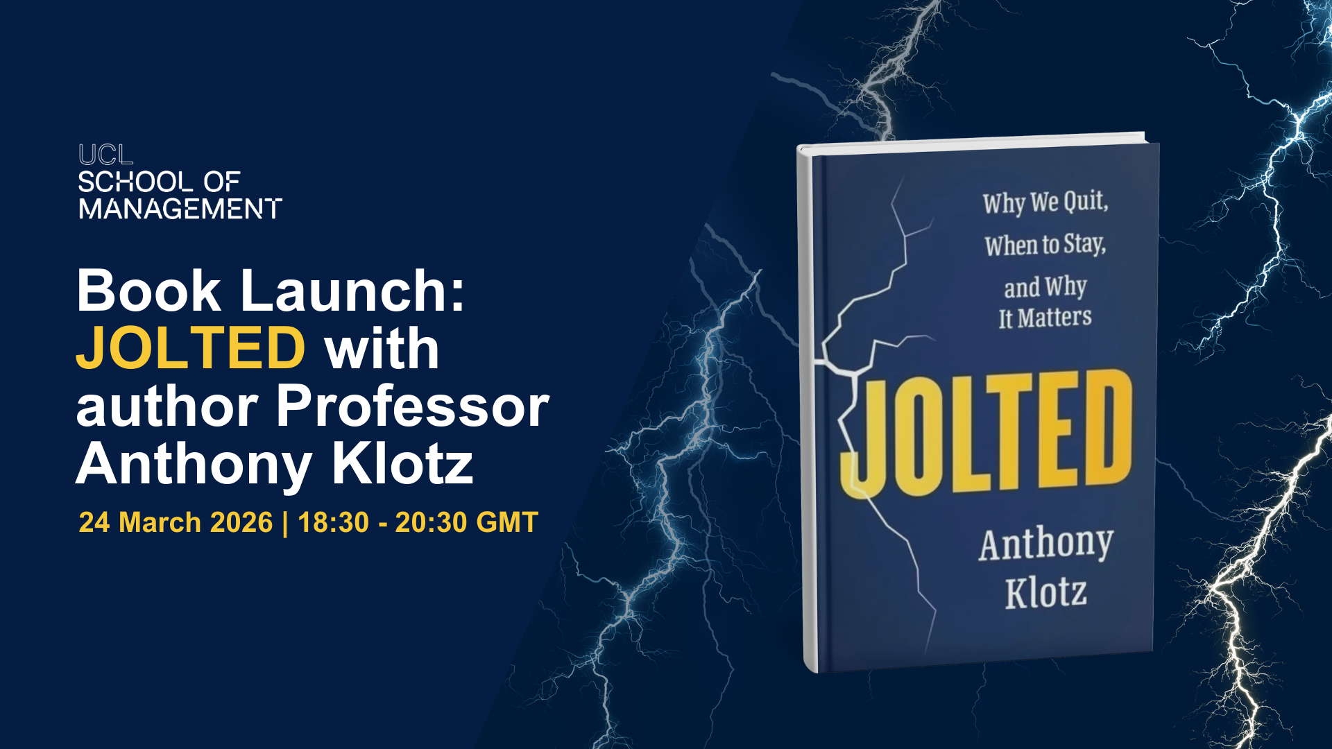 On Tuesday 24 March, UCL School of Management will host an exclusive, invite-only event to celebrate the official launch of Professor Anthony Klotz’s latest book, Jolted.