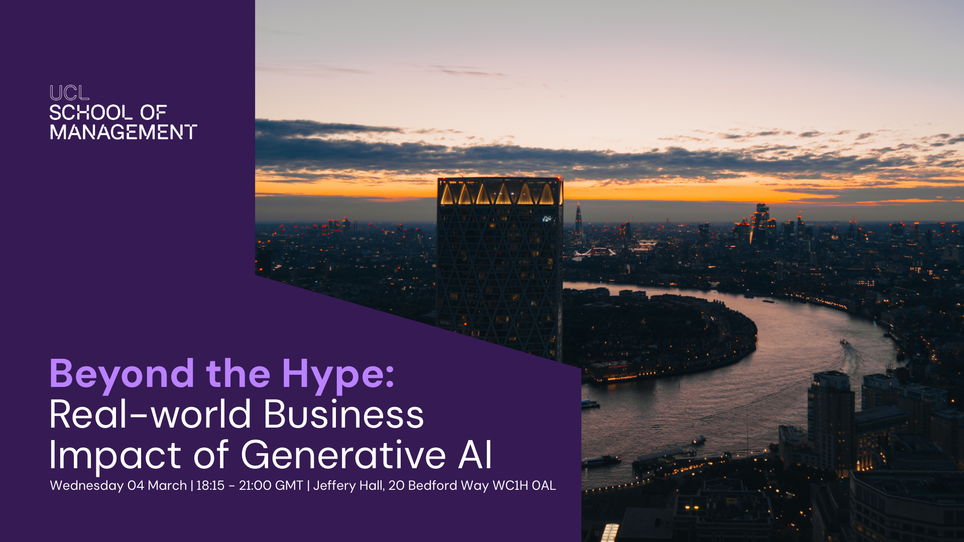 Open to BSc and MSc Management Science current students and alumni, we welcome you to join UCL School of Management on Wednesday 04 March for an exclusive evening of networking and inspiring conversations surrounding the topic of generative AI and its implications in the world of business.